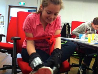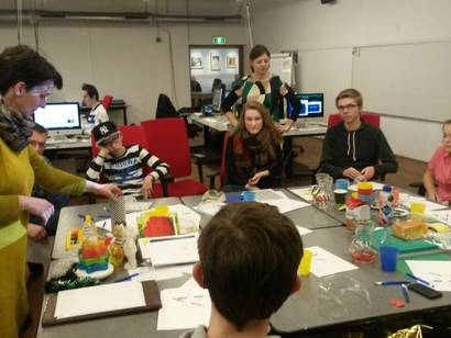 Tijdens het Open Lab is er al aardig wat ervaring opgedaan met 3D ontwerpen en printen, dus we zijn gewoon met een groepje aan de slag gegaan. Twee experts van Visio leggen uit wat wel en niet goed werkt voor slechtziende kinderen en beoordelen de ideeën. Het probleem bij slechtzienden zit hem vaak eerder in de signaalverwerking naar de hersenen dan in de ogen. En die signaalverwerking kan je trainen met goed oefenmateriaal. Nog best een opgave, om van je eerste idee tot een werkend prototype te komen! De jonge ontwerpers zijn tussen de 10 en 18 jaar oud.